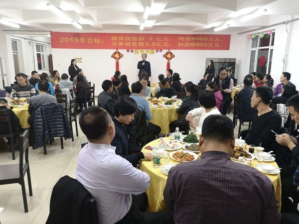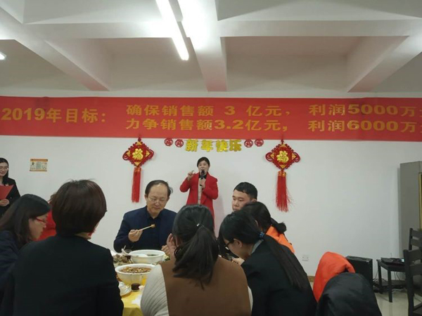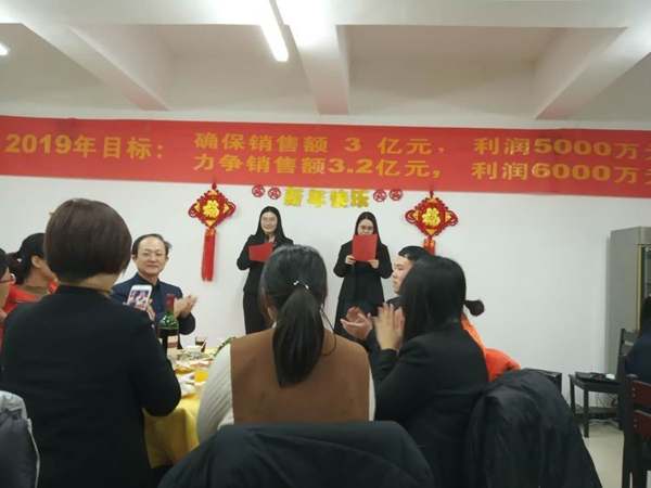活動(dòng)第一項(xiàng):Boss致辭! 董事長首先給大家拜年鞠躬,感謝大家一年來的付出。回顧2018年的艱難與艱辛,社會(huì)經(jīng)濟(jì)形勢疲軟,公司雖然緊張但已經(jīng)是同地區(qū)過的最好的大公司,感謝大家這一年對(duì)公司的信任與支持,同時(shí)也肯定了2018年是公司業(yè)績最優(yōu),技術(shù)突破最多,成績最好的一年。 展望2019年,國家政策重大利好,公司度過了最艱難的時(shí)期,資本支持足,公司將進(jìn)入高速發(fā)展階段。要求利潤由兩千多萬要邁向五千多萬,并挑戰(zhàn)六千萬目標(biāo)。看來小伙伴們要擼起袖子加油干啦!!! 董事長強(qiáng)調(diào)公司由新三板改創(chuàng)業(yè)板或科創(chuàng)板,公司產(chǎn)品屬于高精尖,國家重點(diǎn)支持的產(chǎn)業(yè),是幾代人干不完的事業(yè)。大家要對(duì)公司有信心,而且爆料董事長將給予一部分老員工與干部低價(jià)購買股份的機(jī)會(huì),公司是混合所有制公司,希望大家共同都享受公司的利潤分紅。小伙伴們,賺錢的機(jī)會(huì)要來了。不知道誰會(huì)有這樣的榮譽(yù)呢,總之大家好好干,衷心的把事業(yè)做好總會(huì)有回報(bào)的。 接下來董事長重點(diǎn)強(qiáng)調(diào)了對(duì)所有參加的員工提出了工作要求,大家要注意了,接下來各部門開會(huì)可要好好分析工作如何開展,如何達(dá)到董事長的要求: 1 行政管理將是2019年重要的工作,彌補(bǔ)公司行政管理的短板,各部門要共同加強(qiáng)職能部門管理意識(shí),建立流程化思維,服務(wù)好生產(chǎn)與銷售。 2 要積極開展批評(píng)與自我批評(píng)工作,用好國家領(lǐng)導(dǎo)人都在用的管理工具。使全員工作的同時(shí),有批評(píng)有獎(jiǎng)勵(lì)有評(píng)價(jià)有意義。吾日三省吾身! 3 提出電子商務(wù)部要加強(qiáng)設(shè)計(jì)思維,多開發(fā)高端日用品,不走量的路線,讓我們用的茶杯酒杯都是我們自己的中硼產(chǎn)品,把中硼這一優(yōu)勢材料推廣出去。 考核部提醒大家,接下來的工作大家要好好思考了,各部門會(huì)議要強(qiáng)調(diào)2019年工作該如何開展了。