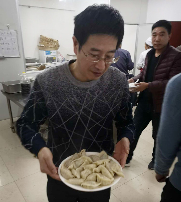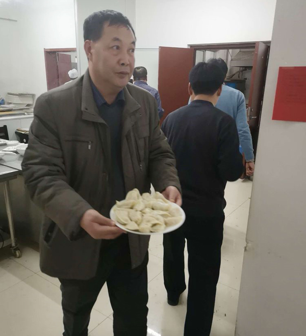 張永華總,大化來的高級(jí)高管,雖然膝蓋疼痛,但是為咱們員工端起餃子來,活力十足,一下年輕20歲。